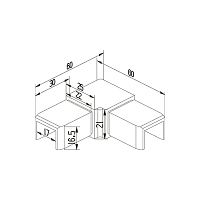 Connecteur 90° en acier inoxydable permettant l’assemblage précis des sections de main courante. Garantit continuité, solidité et alignement parfait.