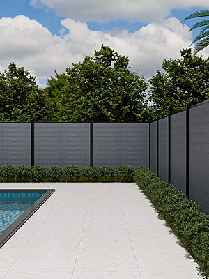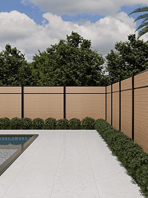 Planche de clôture en composite antique avec motif ardoise, conçue pour les systèmes de clôtures extérieures durables et modernes. Fabriquée en composite WPC, elle offre une excellente résistance aux intempéries, aux UV et à l’humidité, tout en conservant son apparence au fil du temps.