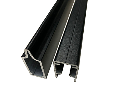 Traverse inférieure et supérieure en aluminium noir conçue pour les clôtures en composite. Assure une rigidité optimale, un alignement précis et une finition uniforme des panneaux.