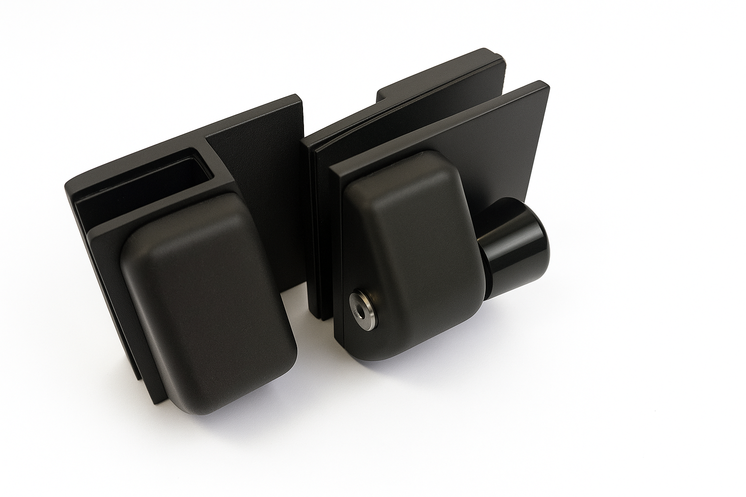 Loquet noir à ouverture intérieure conçu pour sécuriser efficacement les portes en verre. Combine fonctionnalité, robustesse et design contemporain. Fréquemment utilisé pour les portes de piscine.