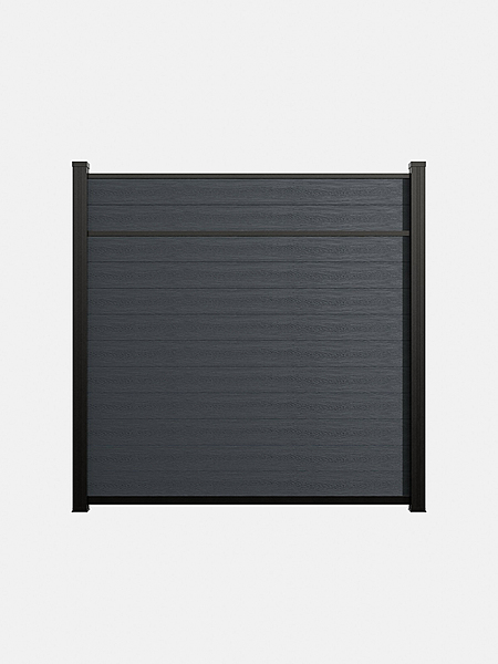 Bande décorative en aluminium noir ajoutant une touche esthétique moderne aux systèmes de clôture et les murs d'intimité. Conçue pour une intégration facile et durable.